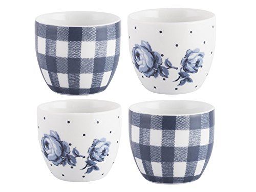 -. Feature : Stilvolle Eierbecher mit Vintage-Indigo Designs / Dekoriert mit atemberaubenden blauen Rosen und gewebte Karo-Design / Hergestellt in super weiß Porzellan / Sammlung von britischen Designer Katie Alice / Inspiriert durch die Delft Tiles von Amsterdam