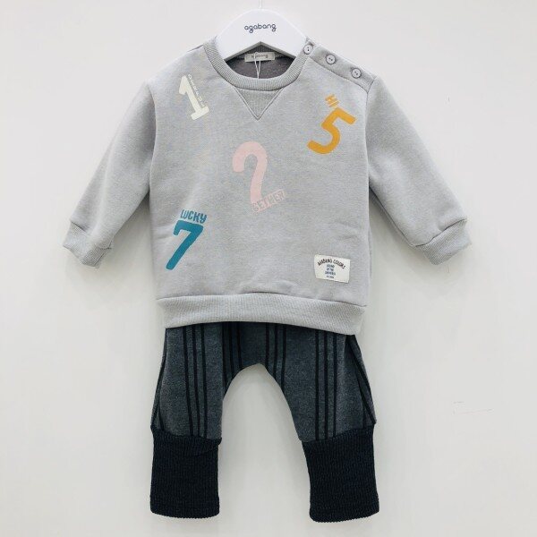 상의에 귀여운 숫자프린트가 되어있는 상하복입니다.어깨단추로 되어있으며,기모안감으로 따뜻합니다.바지 끝에 시보리가 있고 두께감이있습니다.색상은 그레이, 핑크 두가지가 있습니다(포장배송을 원하시는 고객님께서는배송문의사항에 메모 남겨주세요~^^)