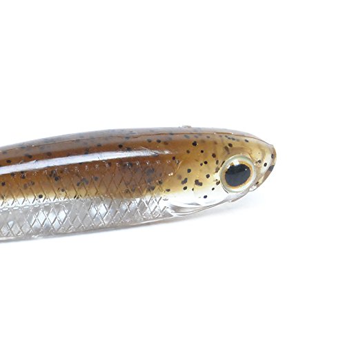 Supple body with round head, wiggle paddle tail, salt and scent Impregnated.
