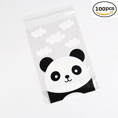 YEHAM 100 pcs Self-adhesive Cute Panda Head Packaging Bags Use for Party Cookie and Candy Packaging Bags (6.2 x 7.8 In)