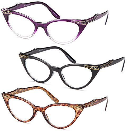 -. Brand : Gamma Ray Optics -. Feature : 3 Pairs of Womens Readers at 1 Low Price / Retro Vintage Cat Eye Shape Design / Light Weight Plastic Frame with Non Spring Hinge / Keep a Pair in Each of Your Favorite Reading Area -. Label : Gamma Ray Optics -. Manufacturer : Gamma Ray Optics -. ProductGroup : Health and Beauty -. ProductTypeName : EYEWEAR -. Publisher : Gamma Ray Optics -. Studio : Gamma Ray Optics -. Title : GAMMA RAY READERS 3 Pairs Ladies' Vintage Cat Eye Readers Quality Reading Glasses for Women