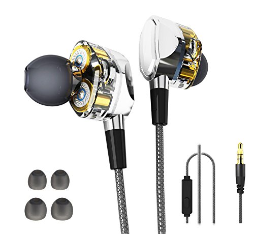 Dual Dynamic Headphone,In-ear Earphone with Mic Deep Heavy Bass and Noise Reduction Suitable for Rock/Country/Hip-Hop/Jazz/Pop