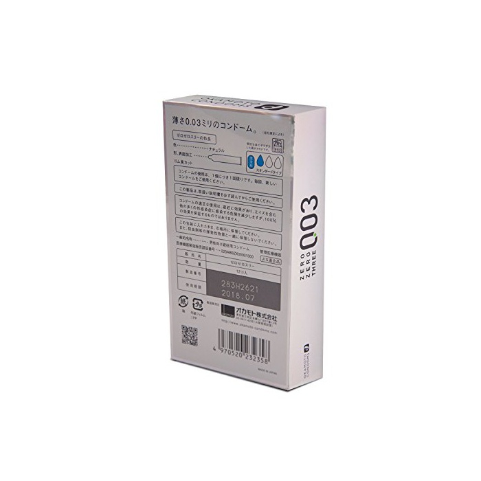 엷음0.03밀리의 콘돔「제로 제로 쓰리」오카모토에게서 탄생.