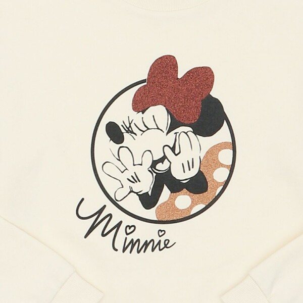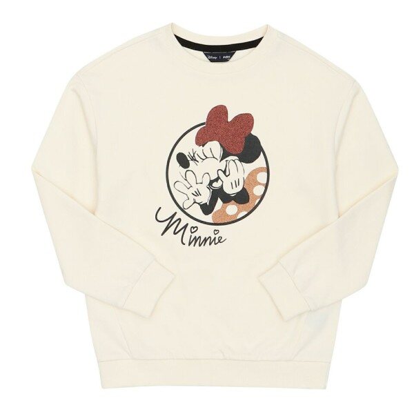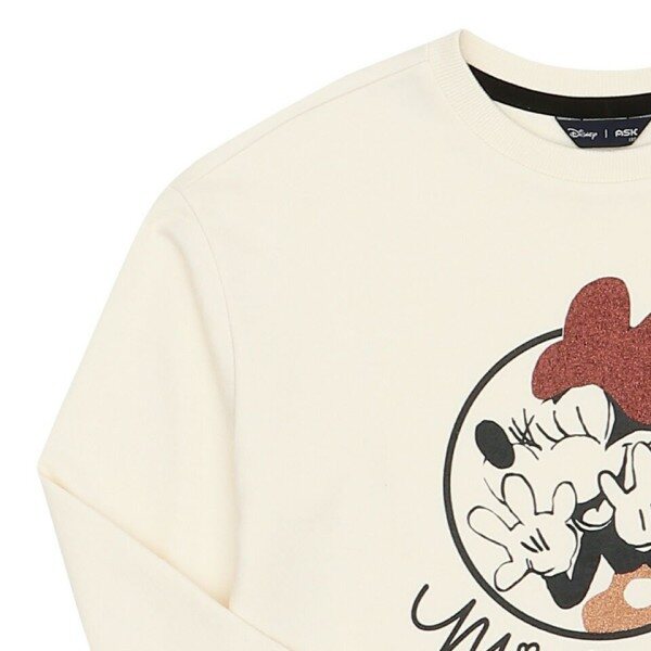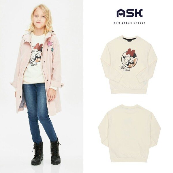 미니 쮸리 소재의 맨투맨 티셔츠.미니 아트윅으로 포인트를 준 스타일.