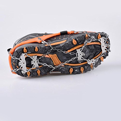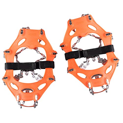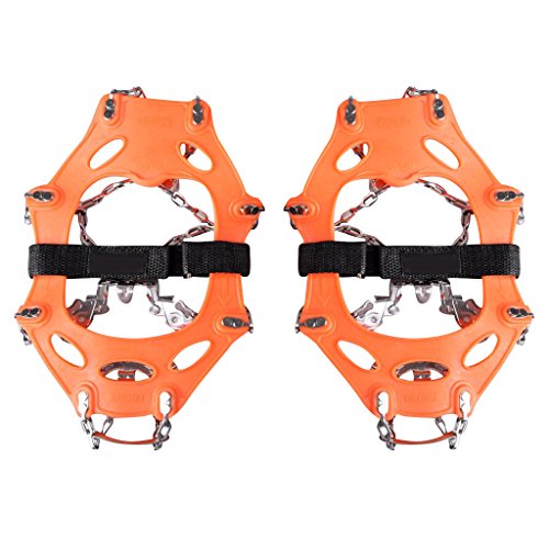 - Reduce the risk of injury from slips and falls when walk on ice, snow, mud and wet grass or other poor conditions - Securely attached to your boots and hiking shoes. These slip-on spikes can dig into all types of terrain - ice, packed snow, wet rocks - Great for winter outdoor enthusiast, sportsmen, workers, hunter, hiker, ice fisherman, snowmobiler, farmer, construction worker and people shoveling snow. - Easy to rinse clean. Easy putting on and taking-off Package Includes: 2 Pieces Shoe Chain Ice Spike Cleats 1 Piece Storage Pouch 0 |