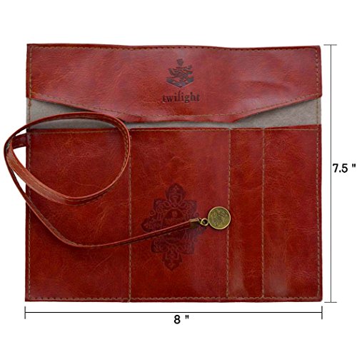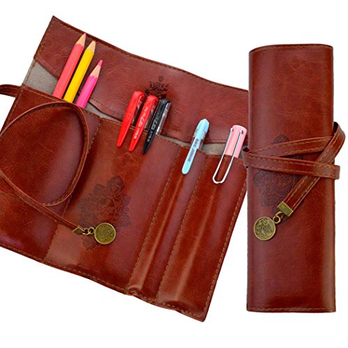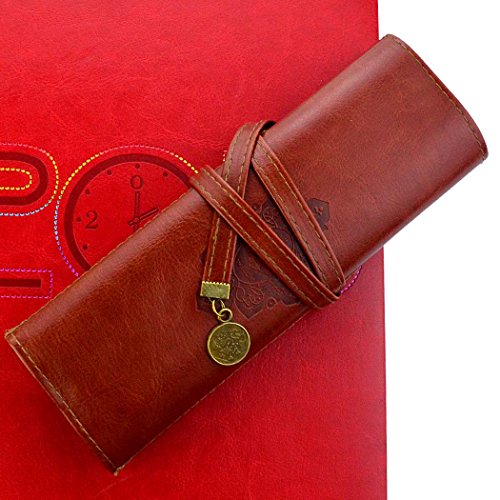 Miayon Twilight Retro Bandage Synthetic Leather Pen Bag Pencil Case Makeup Pouch,Vintage Style Rollup Pencil Case, Pencil Bag(Dark Brown)