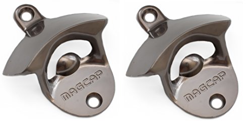 - INDOOR/OUTDOOR - The MAGCAP is a rust proof bottle opener perfect for indoor or outdoor use. Mount it on your patio, in your man cave, in your kitchen or bar. It’s attractive matted nickel finish complements any setting.