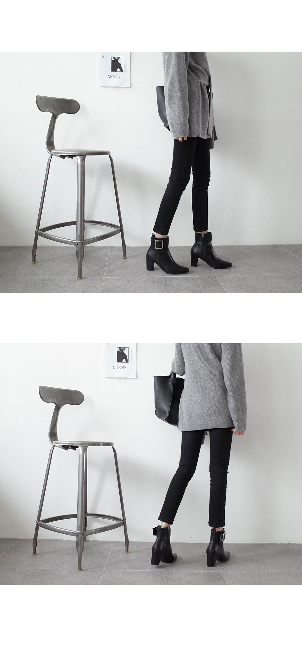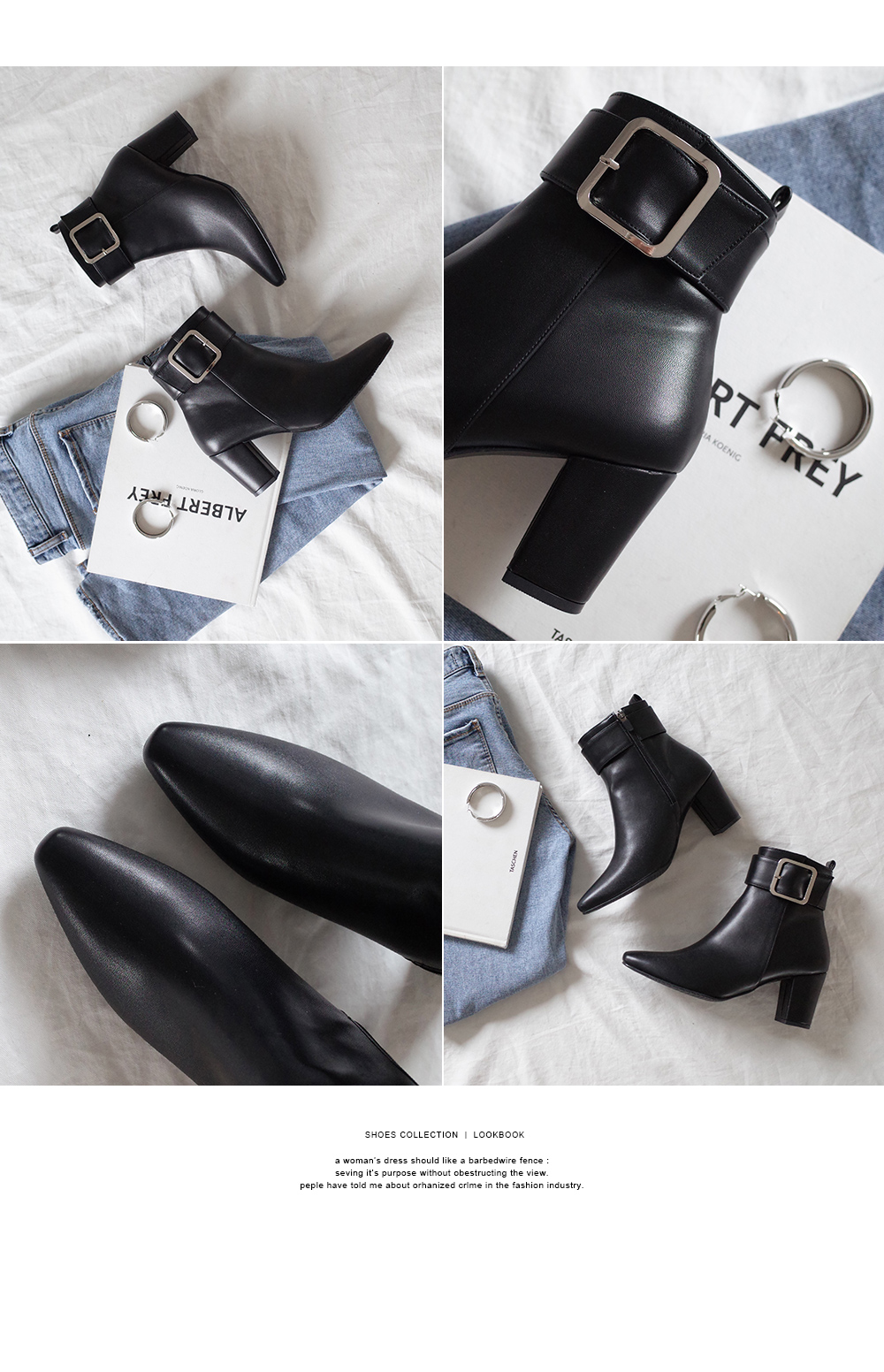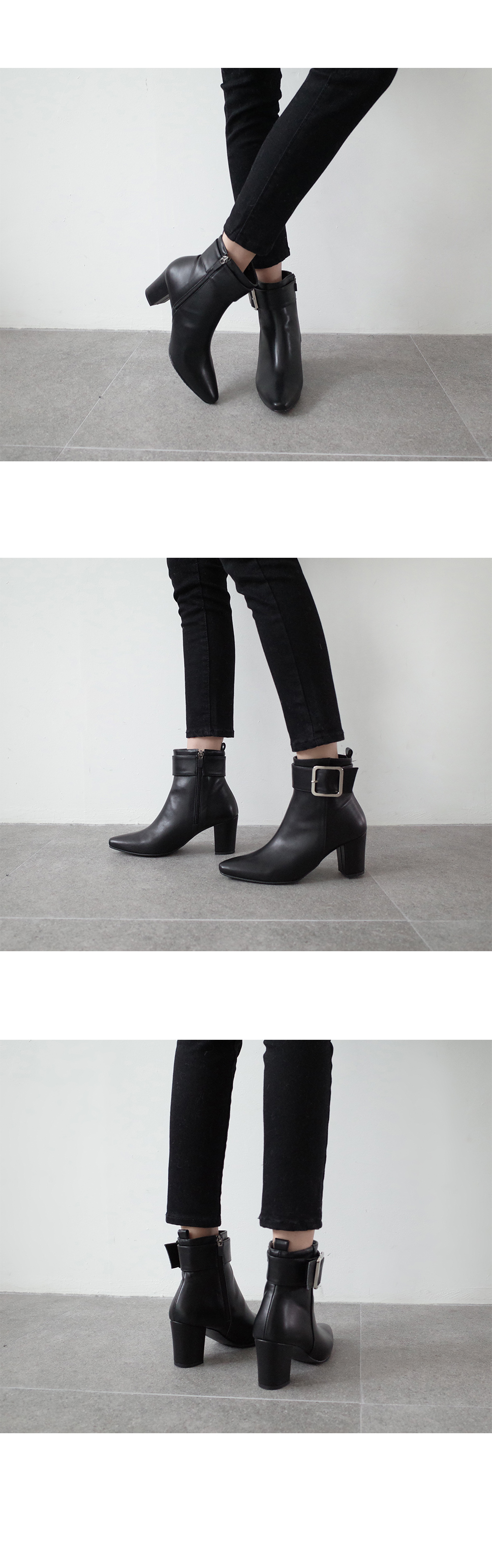 발목에 더해진 빅사이즈의 버클라인과 시크한 디테일이 되어주고 군더더기없이 깔끔하게 떨어지는 라인으로 유행감없이 착화됩니다.