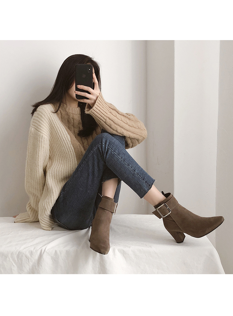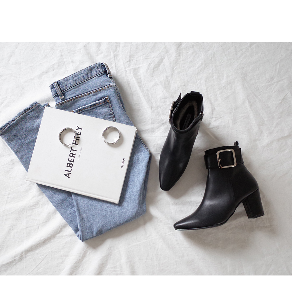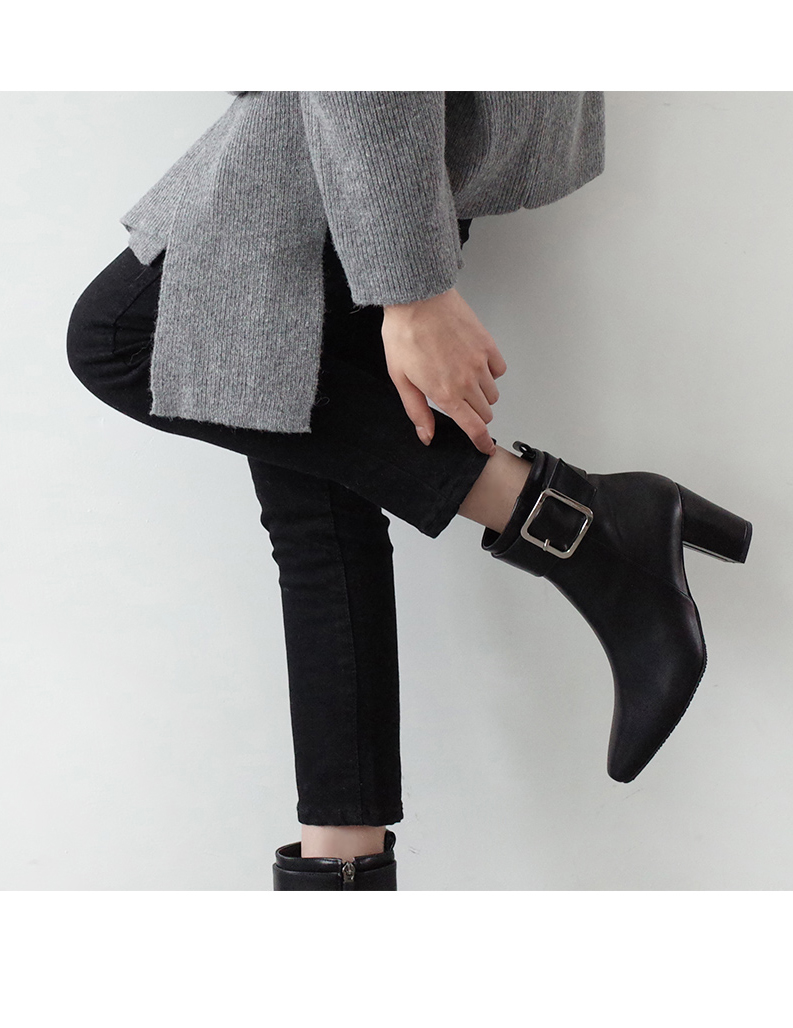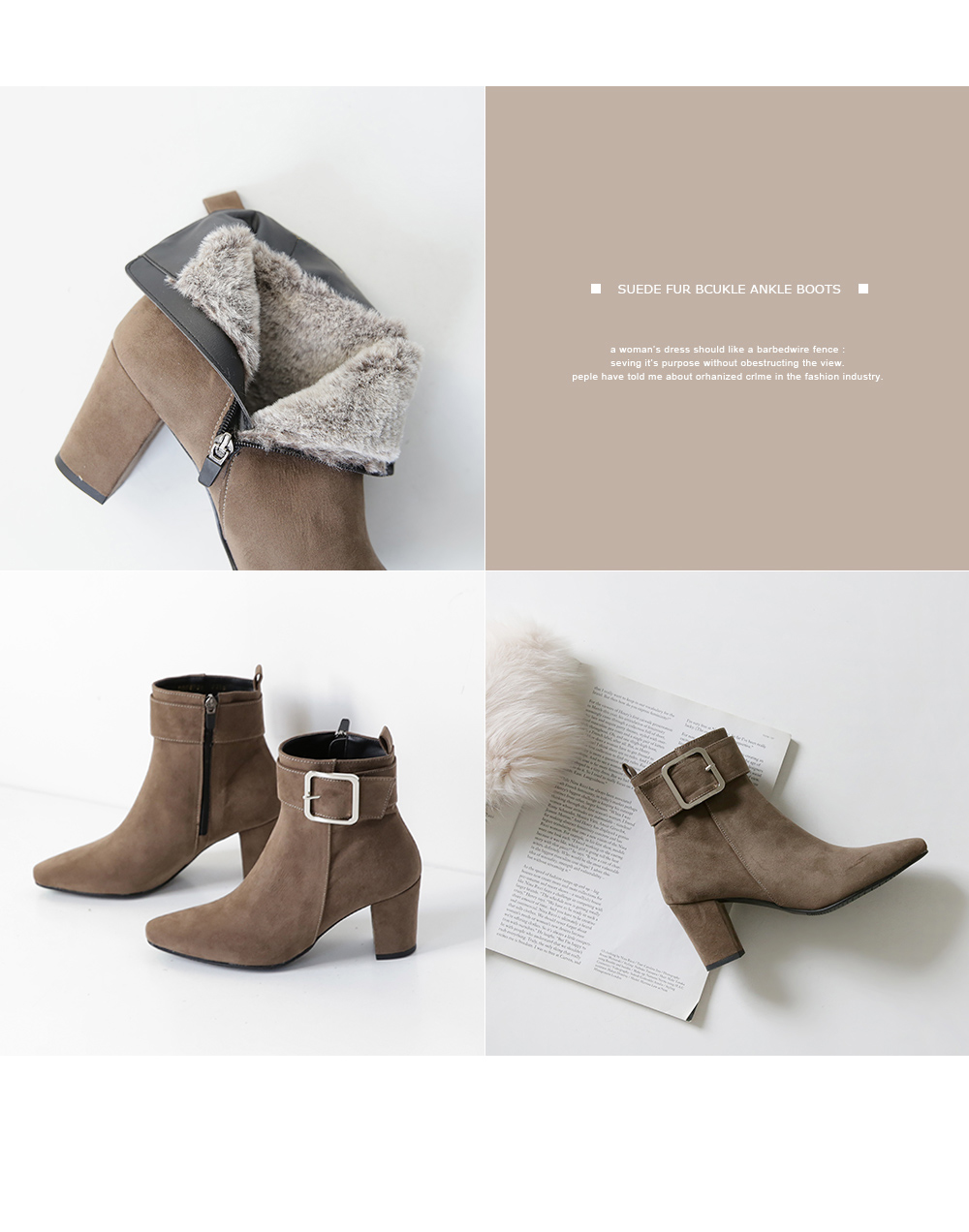 Suede fur buckle ankle boots 날렵한 쉐입이 멋스러운 앵클부츠입니다.