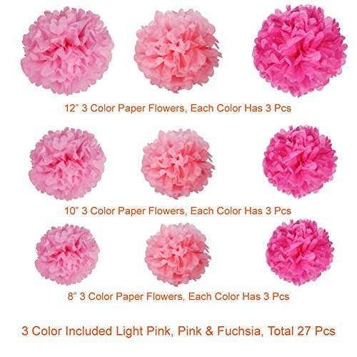 QUANTITY – A loveable tissue paper balls decoration set for a pink lover, set includes 27 pcs paper flowers in 3 different sizes and colors