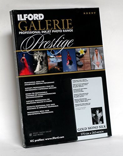Fans of traditional black & white products no longer need a darkroom to bring to life their black and white prints. The contrast and transition between shadow and highlight areas is seamless thanks to the unique ILFORD nonporous coating layer technology coupled with exceptional Dmax and Dmin values, Gold Mono Silk is capable of delivering deep, rich blacks and bright whites. Backed by over 130 years of imaging excellence and know-how in both digital and analogue printing, ILFORD has finally blended the two mediums to offer this unique and exciting step forward in digital imaging technology. Gold Mono Silk is available in sheets and rolls and compatible with both pigment and dye based printers.Feature