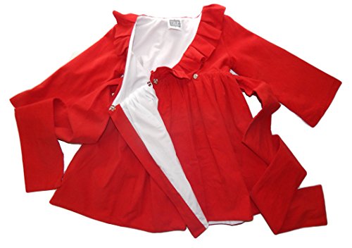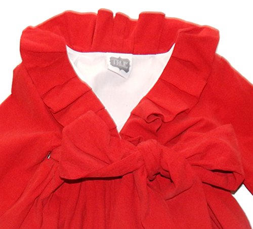 Girl's Red Corduroy Ruffled Dress Jacket by TRUE features an inner snap closure, a large sash to tie into a bow, and is double lined. Machine Washable, Tumble Dry.