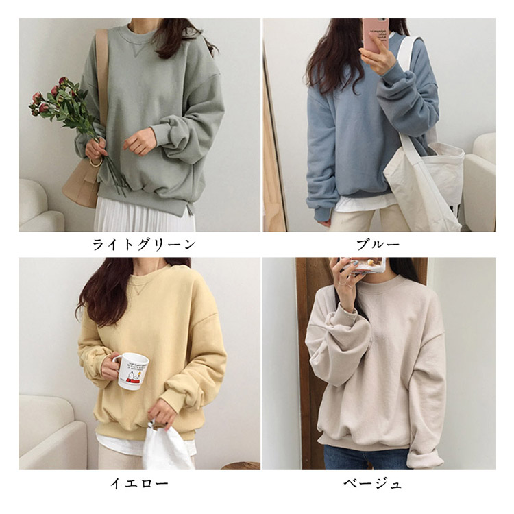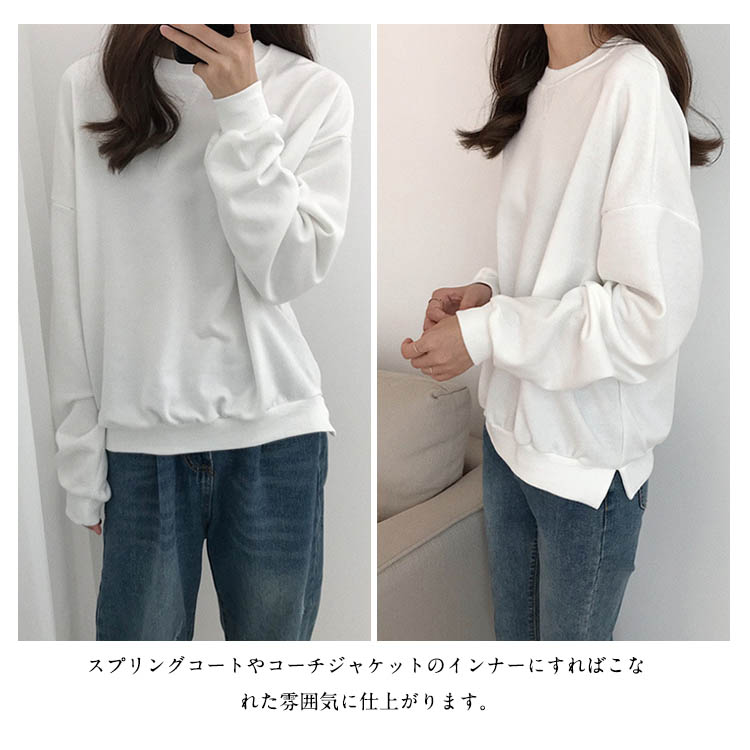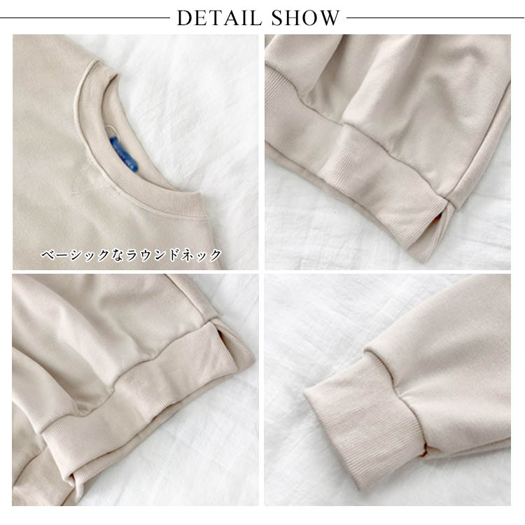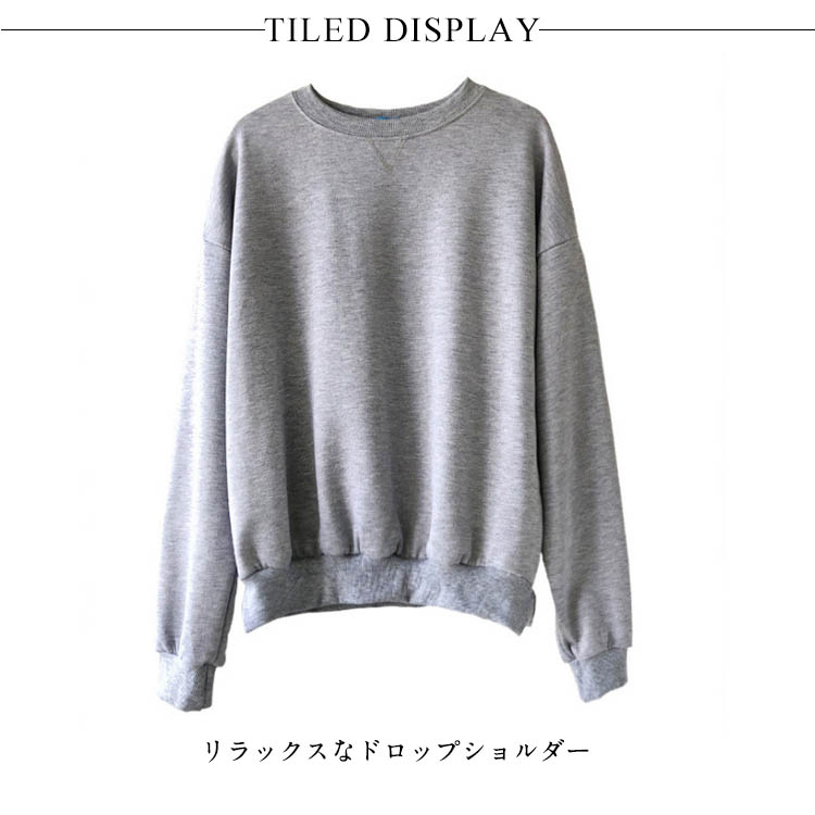 | 程良いオーバーサイズが着回し力抜群のスウェットトレーナーです。長めの袖丈も可愛らしく、女性らしい華奢さを引き立ててくれます。幅広の裾リブがすっきりした印象で、少しスリット入りが着心地良く仕上がりました。スプリングコートやコーチジャケットのインナーにすればこなれた雰囲気に仕上がります。 | |