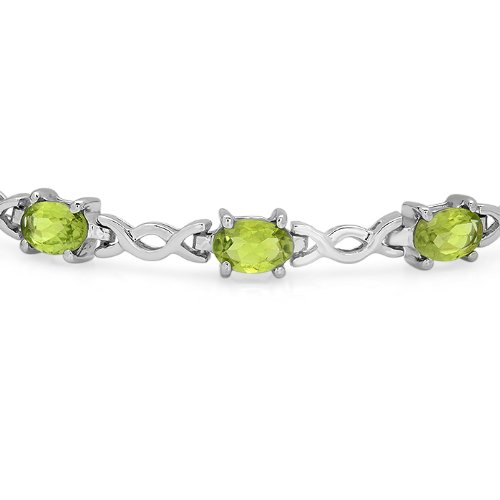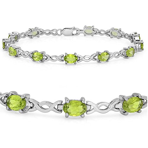 6 carats of peridot set in this lovely sterling silver tennis bracelet. The bracelet measures just over 7 1/4 inches long.