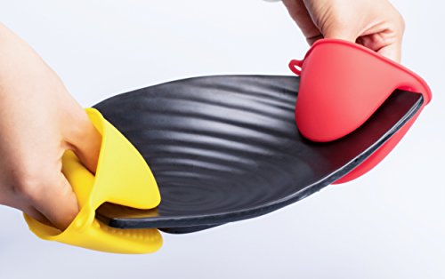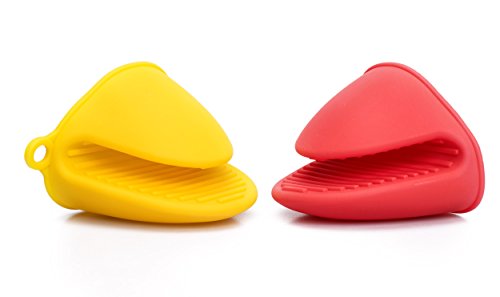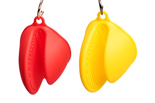 - Two silicone oven mitts/pot holders. one red and one yellow