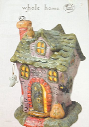 RARE HALLOWEEN CERAMIC HAUNTED HOUSE TEA LIGHT-GHOSTS- WITCH-SPIDER GLITTER