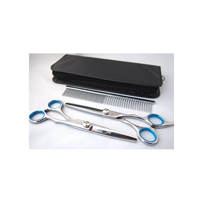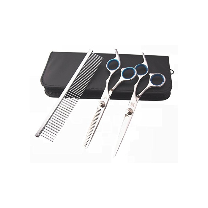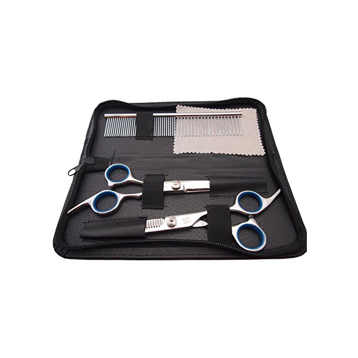 PET LALA (애완동물 라라) 애완동물 트리밍 glue 밍 5점 세트 견용 스테인레스 시자셋토 스트레이트 가위 좋으니까바사미 빗 시자케스 손질 크로스 부초심자 자택용