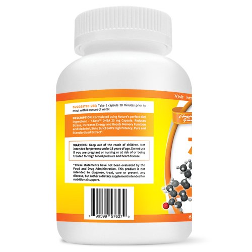 - Feature : Nutritional Scientists Consider 7-Keto DHEA to be Among the Most Effective Compounds for Anti-Aging and Overall Health - 7-Keto® is a Natural Occuring Metabolite of DHEA, providing the same benefits of DHEA, without its Associated Side Effects! / 7-Keto DHEA Safely Promotes Thermogenesis, thereby Supporting the Maintenance of Healthy Body Weight / Increases Physical and Psychological Well-being, including Better Sleep and Ability to Handle Stress / Provides Support for Dieting or Strength Training - Recommended as #1 in Belly-Blasting Weight-Loss Supplement / Made Exclusively for Those Who Want the Very Best Thermogenic, Safe, Natural, and Non-stimulant 7-Keto® DHEA 25mg Capsules