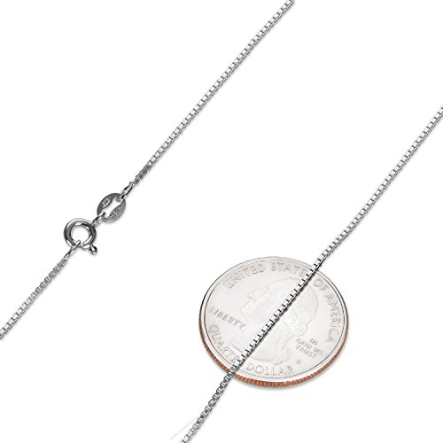 Radiating with glistening shine, this thin 1mm pure .925 sterling silver box chain necklace features interlocked square links for a flexible shimmer. Finished with a secure Ring Clasp, this hypoallergenic chain is offered in various lengths.