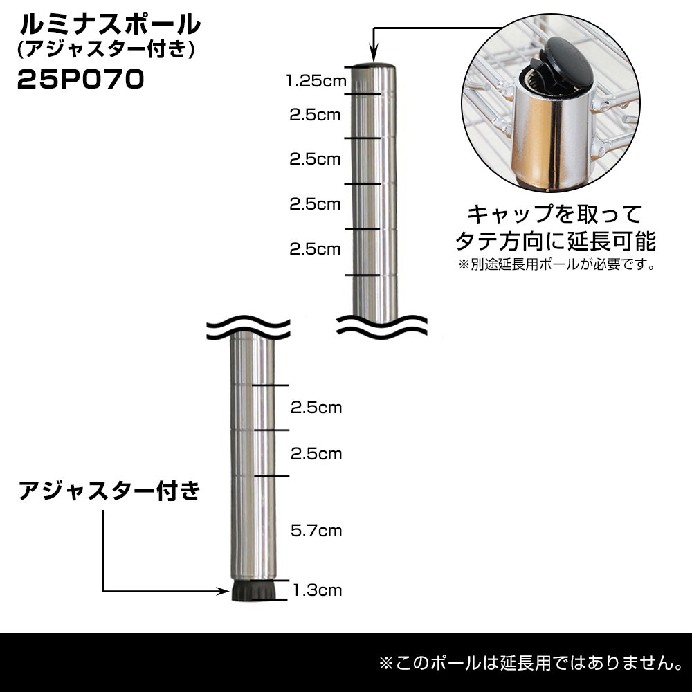 ◆ Pole diameter 25mm / Luminous Regular series ◆ Set shelf board in increments of 2.5cm Steel rack with groove Groove position carved every 25mm column, you can freely install parts such as shelves ◆ Standard adjusters