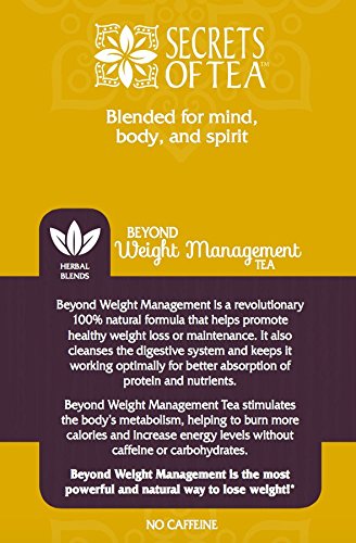 -. Binding : Health and Beauty -. Brand : Secrets Of Tea -. Color : Green -. EAN : 0820103446709 -. Feature : Body detoxifier / Fast and easy weight loss / Raises metabolism / Targets the stubborn fat by igniting the digestive fire / Cleanses the digestive system -. IsAdultProduct : 0 -. Label : Secrets Of Tea -. Manufacturer : Secrets Of Tea -. PackageQuantity : 1 -. ProductGroup : Health and Beauty -. ProductTypeName : HEALTH_PERSONAL_CARE -. Publisher : Secrets Of Tea -. Studio : Secrets Of Tea -. Title : Loose Weight Tea : Beyond Weight Management -. UPC : 820103446709