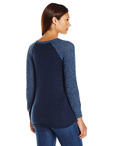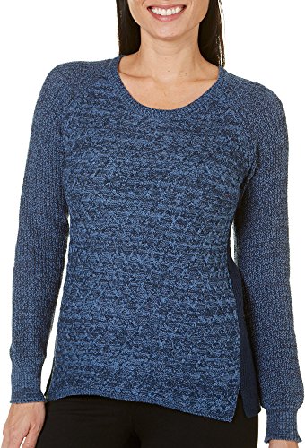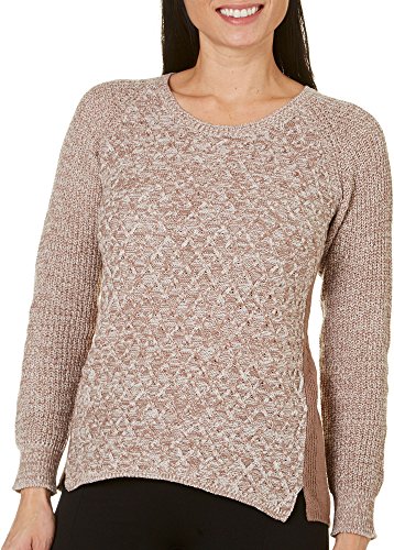 OneWorld Women's Petite Long Sleeve Textured Stitch Pullover Sweater with Hi Lo Hem