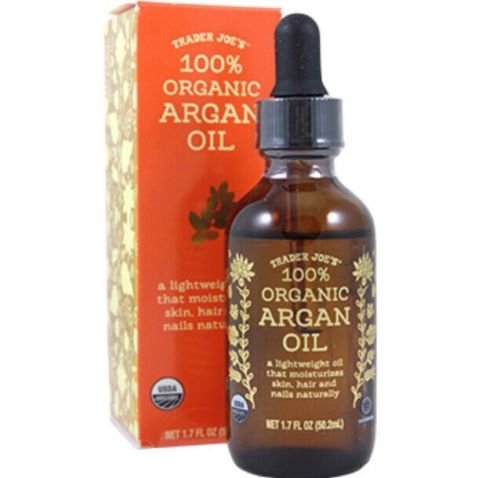- Trader Joe's Organic Argan Oil. A lightweight Oil that moistures skin, hair, and nails naturally.
