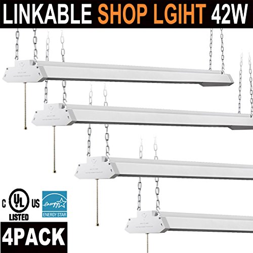 Utility Linkable LED Shop light,4FT(4pk.) , Aluminum Housing, 42W 4500LM 5000K Daylight White, With Pull Chain (ON/OFF),Linear Worklight Fixture with Plug,Energy Star UL Listed 4PACK(5000K Daylight)