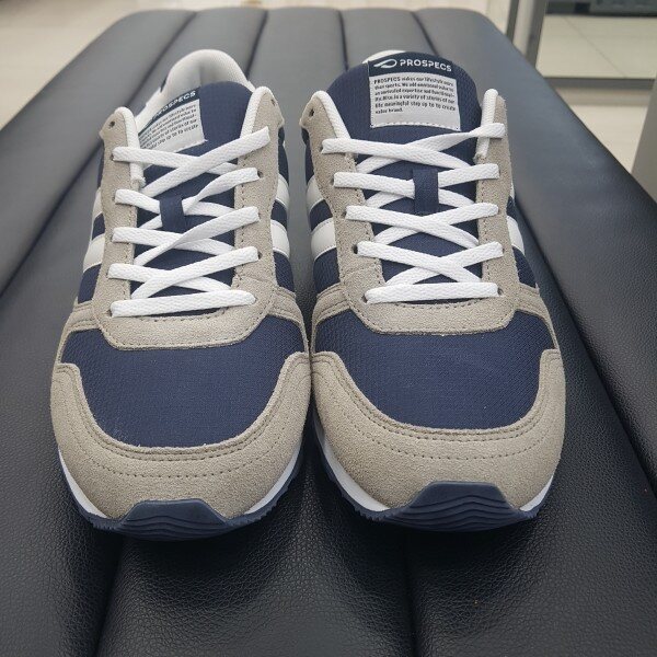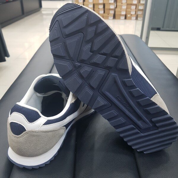 프로스펙스 구로고로 디자인으로 형상화한 레트로 상품 스플리트 가죽소재를 갑피에 적용하여 고급감 향상 합리적가격에 전체 합피 버전과 나일론 혼용 버전 전개