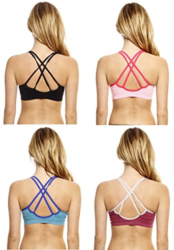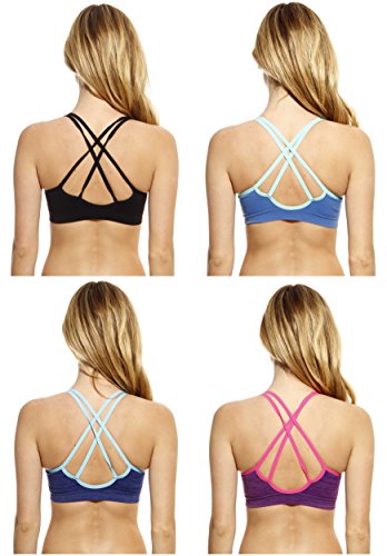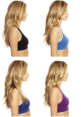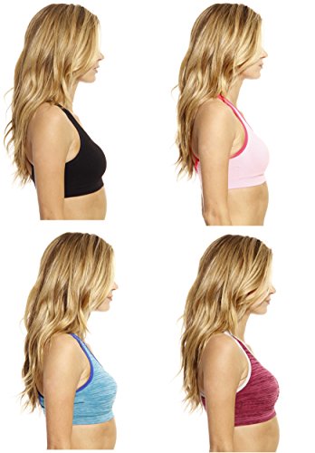 -. Feature : NO STRESS WORKOUTS: Keep bounce in check without restricting breathing with Just Intimate's high impact sports bra set. Designed for great support, these sports bras for women are the perfect workout companion for running, yoga, pilates, weightlifting, and all your other fitness pursuits. / ALL ABOUT COMFORT: Made using a moisture-wicking fabric made of 60% polyester, 30% nylon and 10% spandex, this sports bra pack keeps you cool & dry even as you get your workout on. We've used low-friction material that prevents chaffing, and removable padding that makes this a great everyday bra when you're looking for a bit of added support. / BEAUTIFUL SEAMLESS LOOK: Our seamless sports bra set can be worn with tight tees without showing any lines, or can be paired with yoga pants to create a trendy workout outfit. You'll love the eye-catching patterns, beautiful color, and strappy detailing that make any workout a stylish affair. / GREAT FIT: A pullover style and a touch of spandex gives this padded sports bra an easy fit. We've also fitted our moisture wicking sports bra with adjustable straps that never dig into your skin. Whether you're plus sized or petite, you'll land on a great fit from our wide range of sizes. / UNRIVALED VALUE FOR MONEY: We've deeply discounted our P.R.Ices to give you 4 workout bras for the P.R.Ice of 1. Treat yourself to a full support sports bra set that goes easy on your wallet while heaping on the style and comfort.