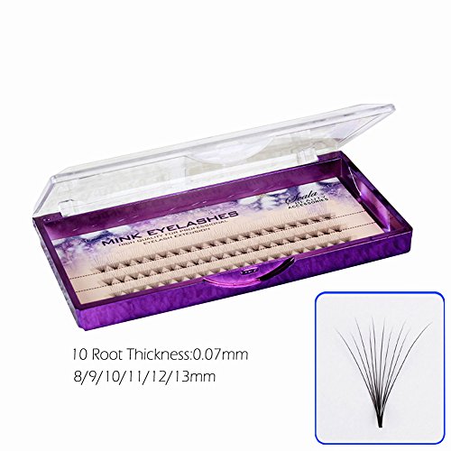Scala Brand Natural Professional Plant false eyelashes 8/9/10/11/12/13mm 10 Root Thickness 0.07mm C Curl 3D Profession Individual Eyelashes Extension Soft...