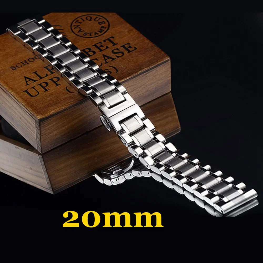 실버 스테인레스 스틸 밴드 20 미리메터 솔리드 남성 손목 시계 밴드 스트랩 손목 교체 시계 스트랩 드 reloj 무료 배송