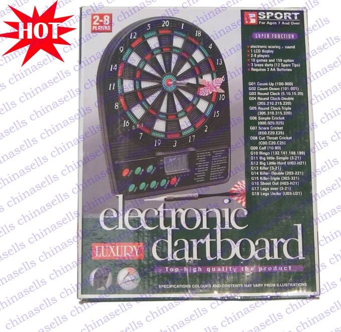 Accessories: 1 electronic dartboard +3 brass darts + 12 replacement soft tipsWeight: about570g