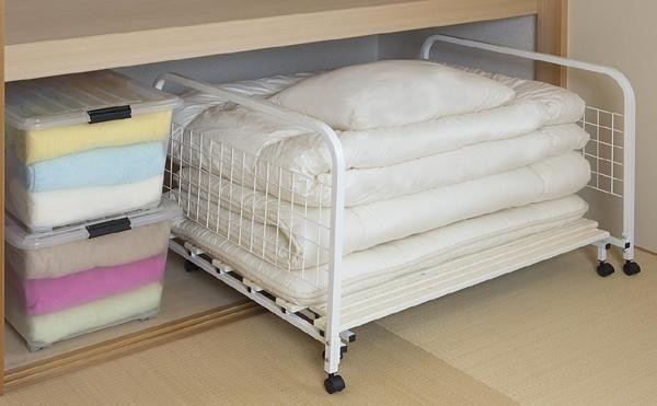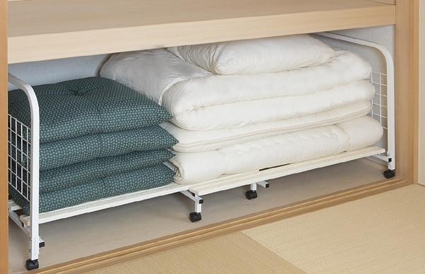 | 収納スペースに合わせて幅を調節できる布団収納ラック。 |