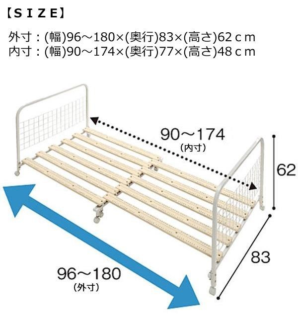 | サイズ | 外寸:幅96~180×奥行83×高さ62cm 個装サイズ:93×77×10cm |