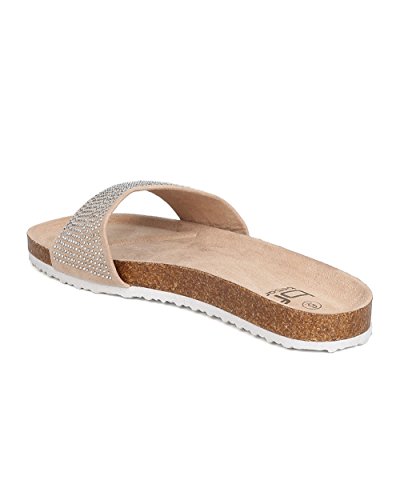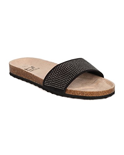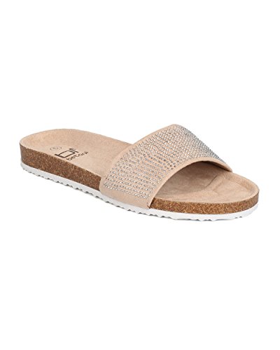Women Faux Suede Rhinestone Sandal - Casual, Spa, Beach - Footbed Slipper - GC28 By Betani