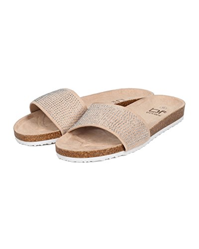 Product Description These slip on sandals are made with a faux suede upper, single band at vamp, and rhinestone fixtures. Also mad with a molded footbed and easy to slip on design. 0