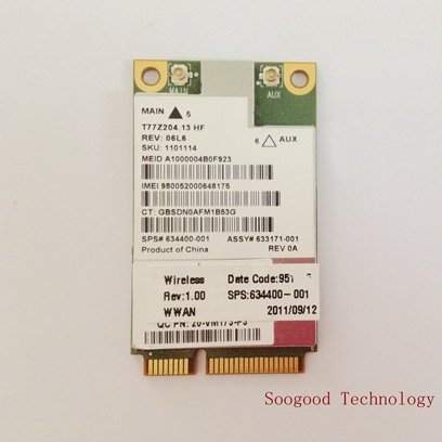 -. Binding : Electronics -. Brand : QUAL -. EAN : 4897042876252 -. Feature : HP GOBI3000 UN2430 HSPA + EV-DO REV A 14Mbps/3.1Mbps / Sierra Wireless 3G Card MC8355 FOR HP -. Label : China -. Manufacturer : China -. PackageQuantity : 1 -. ProductGroup : PC Accessory -. ProductTypeName : NETWORKING_DEVICE -. Publisher : China -. Studio : China -. Title : Sierra Wireless 3G Card MC8355 Gobi3000 HS2430 HSPA + EV-DO REV A 14Mbps/3.1Mbps SPS 634400-001 for HP