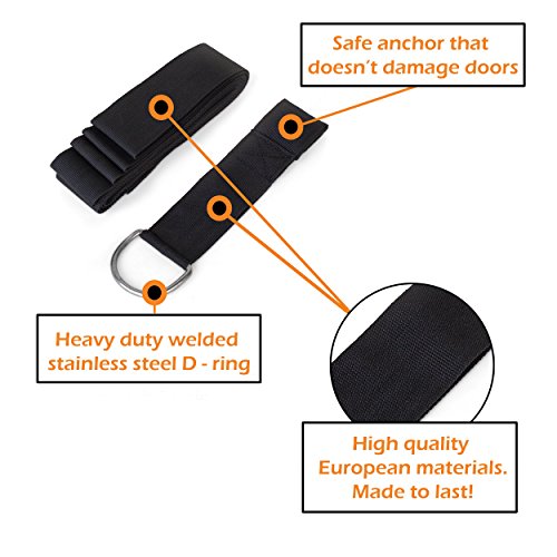 SOFT ATTACHMENT AND COMFORTABLE USE Doesn't scratch your door but fixes band really solid. Thanks to the wide(1.6 inch) and soft strap you don’t get rope burns. Yet the strap was selected from European best manufacturers and is really durable so you will use it for a long – long time.