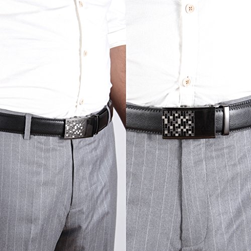 -. Binding : Apparel -. Brand : Pazzi PIZIO -. Department : mens -. Feature : The Ratchet System is Awesome: Far superior to traditional belt design.You can get the PERFECT fit even if your waistline changes a bit. Perfect fit every time. / Durable and Reliable: Belt buckle and belt body removable and interchangeable. easy removable bulkle allows you to cut the bult to your ideal size. / Scratch Resistant Buckles Made to Last: Simple style suitable for business and leisure. / Trim to Fit and Comfortable: Belt buckle is zinc alloy. Cowhide leather quality designer belt for men, complemented with a highly fashionable stylish and interchangeable buckle that is elegantly designed with class. / Sold with Gift Box + 100% Satisfaction Guaranteed: We know you'll love our belt as much as we do, If for any reason you're not 100% SATISFIED, let us know and our customer service team will make things right: full refund or a free replacement, whichever you prefer. -. ProductGroup : Apparel -. ProductTypeName : ACCESSORY -. Title : Men's Leather Belt with Automatic Solid Buckle -Scratch resistant - Ratchet Dress Belt With a Gift Box by Pazzi PIZIO