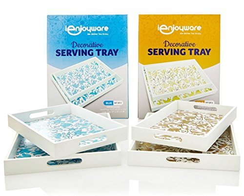 iEnjoyware Decorative Serving Tray with Routed Handle - 15.5"L x 9.75" W – Blue