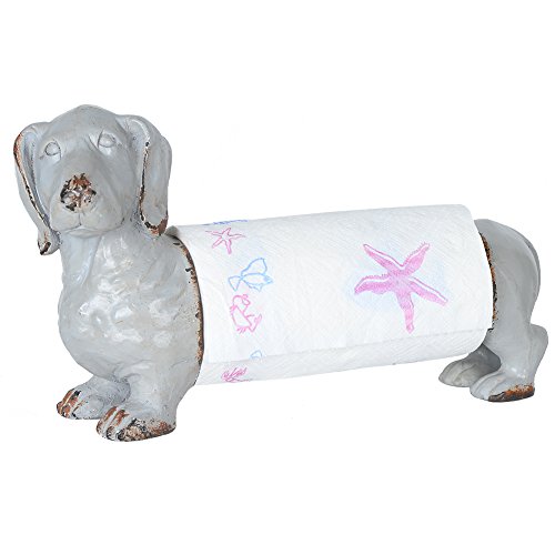 NIKKY HOME Shabby Chic Metal and Resin Animal Paper Towel Holder, Dog, Grey