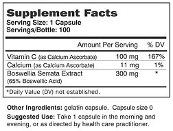 -. Binding : Health and Beauty -. Brand : Pain & Stress Center -. EAN : 0648046191001 -. Feature : BOSWELLA Plus® / Why Take Unnecessary Risks with NSAIDs / Boswella without side effects / Boswellia Safe and effective herb that has been used for hundreds of years as part of Ayurvedic medicine from India. / Boswellia has positive results in 70% of users and Boswellia works without side effects.† -. IsAdultProduct : 0 -. Label : Pain & Stress Center Products -. Manufacturer : Pain & Stress Center Products -. Model : No Model -. MPN : No MPN -. PackageQuantity : 1 -. PartNumber : No MPN -. ProductGroup : Health and Beauty -. ProductTypeName : HEALTH_PERSONAL_CARE -. Publisher : Pain & Stress Center Products -. Size : 300 mg 100 capsules -. Studio : Pain & Stress Center Products -. Title : Boswella Plus Ester C 100 Capsules -. UPC : 648046191001