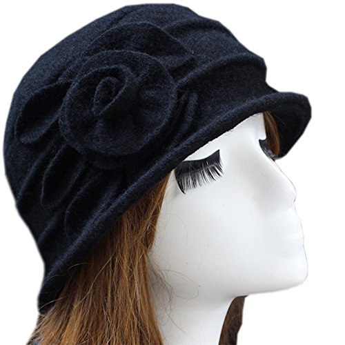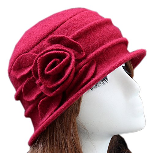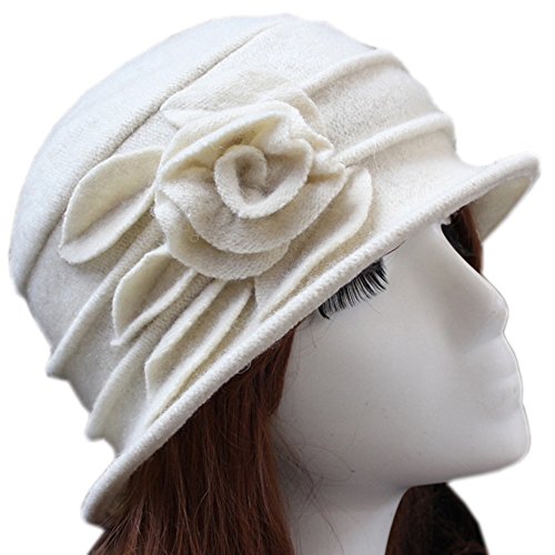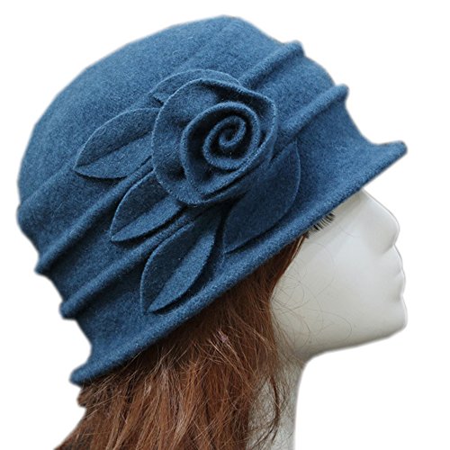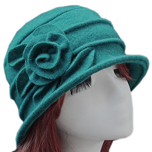 Feature Fabric:100% Wool Size:Circumference:22.44" Color:White, Peacock Blue, Black, Coffee, Wine Red, Purplish Red, Turquoise The Bucket Hat Brim Features a Stitched Flower, Graceful Elegant Very Versatile for Dress Up or Casual Everyday Great Cold/Cool Weather Hats, They can be Worn to Church, Work, Date or Casually Anytime Caring Tips: