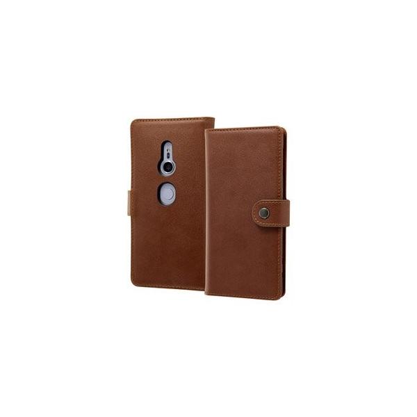 Xperia XZ2 (SO-03K SOV37) 用 手帳型ケース 本革 スナップボタン ブラウン