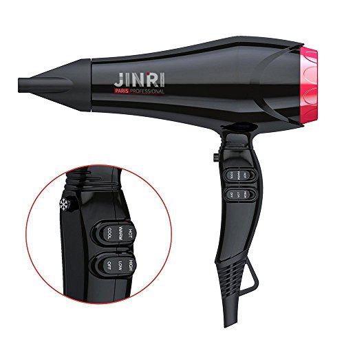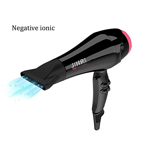 JINRI Professional Hair Dryer Ceramic Negative Ionic Blow Dryer 1875w AC Motor 2 Speed and 3 Heat Settings with Cold Shot Button US Plug Dryer,Black