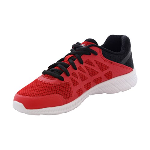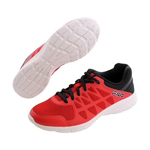 Perforated mesh upper in red with black. Mid cut construction. Lace up closure for a secure fit. . Padded collar and tongue. Soft interior fabric lining. Fila logo detailing. Cushion footbed and insole. Rubber outsole that provides traction and durability.