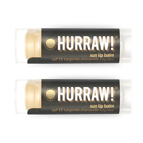 TWO 4.3g/.15oz Oval Tubes of SUN Hurraw! Lip Balm. SPF 15. Zinc Oxide Sun Protection with Tangerine and Chamomile. Glides on silky smooth and virtually CLEAR! Made with Premium Organic, Vegan and Raw Ingredients. Hurraw! Balms are Cruelty Free, GMO Free and Gluten Free. Simply, the Best Luxury Lip Balm MADE IN THE USA.