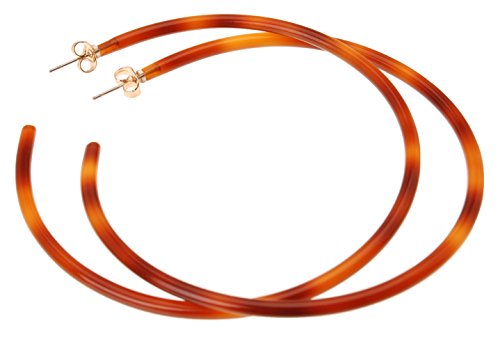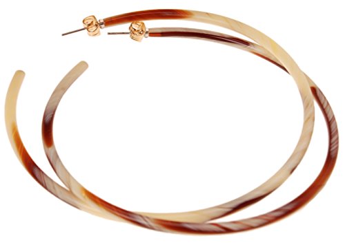 L. Erickson Skinny Jumbo Hoop Earrings are a sophisticated accent piece. Made of luxurious cellulose acetate, the large hoop earrings for pierced ears feature gold-plated brass posts with secure push-on backings. With their sleek design and elegant polished finish, these chic hoops are an eye-catching addition to your ensemble.Feature