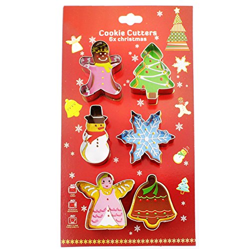 Christmas Cookie Cutters Set,Gingerbread Man,Christmas Tree,Snowman,Snowflake,Angel,Bell- 6pcs